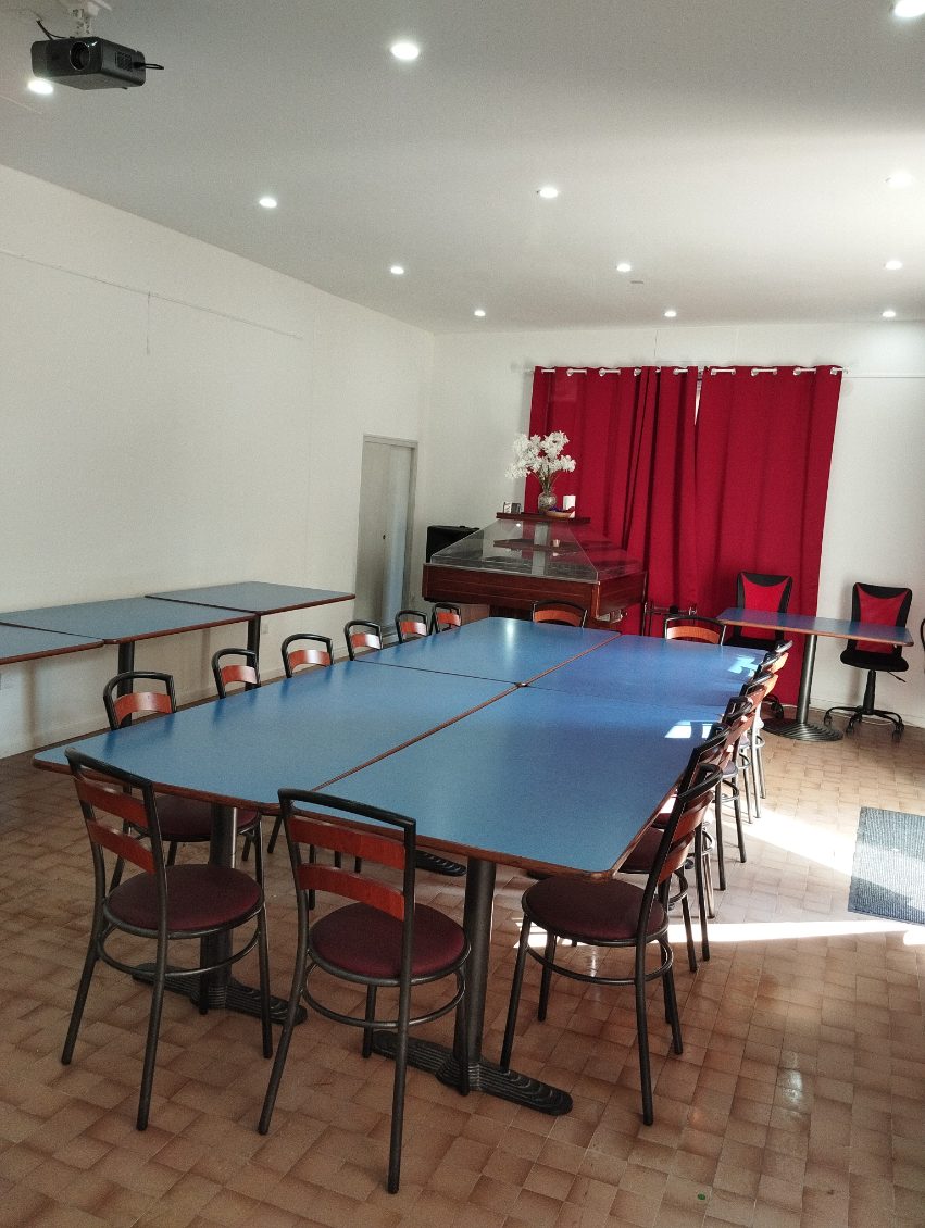 Notre salle, de 55 m2, peut accueillir jusqu'à 50 personnes. Elle se trouve au rez-de-chaussée et est accessible aux personnes à mobilité réduite.